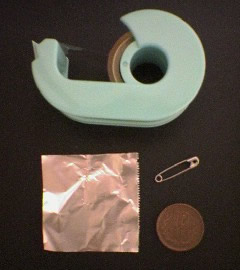 6) 裏側に、安全ピンをセロテープでくっ付けます
